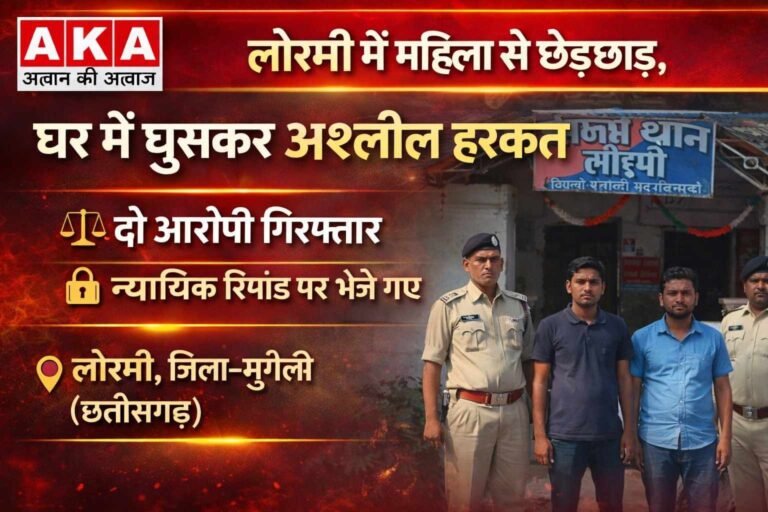 लोरमी (जिला मुंगेली)। थाना लोरमी क्षेत्र में महिला से छेड़छाड़ और घर में घुसकर अश्लील हरकत करने का गंभीर मामला...