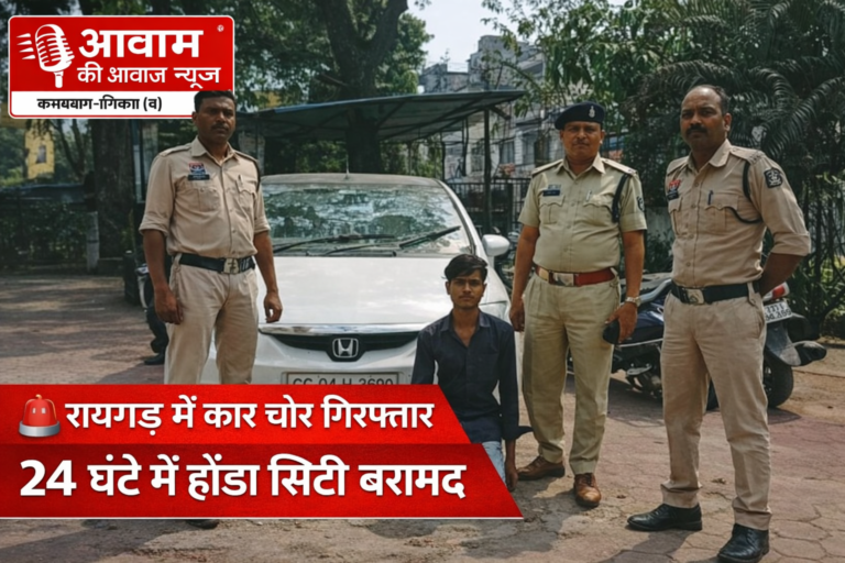 रायगढ़। थाना कोतवाली पुलिस ने चैतन्य नगर क्षेत्र से चोरी हुई होंडा सिटी कार को 24 घंटे के भीतर बरामद...