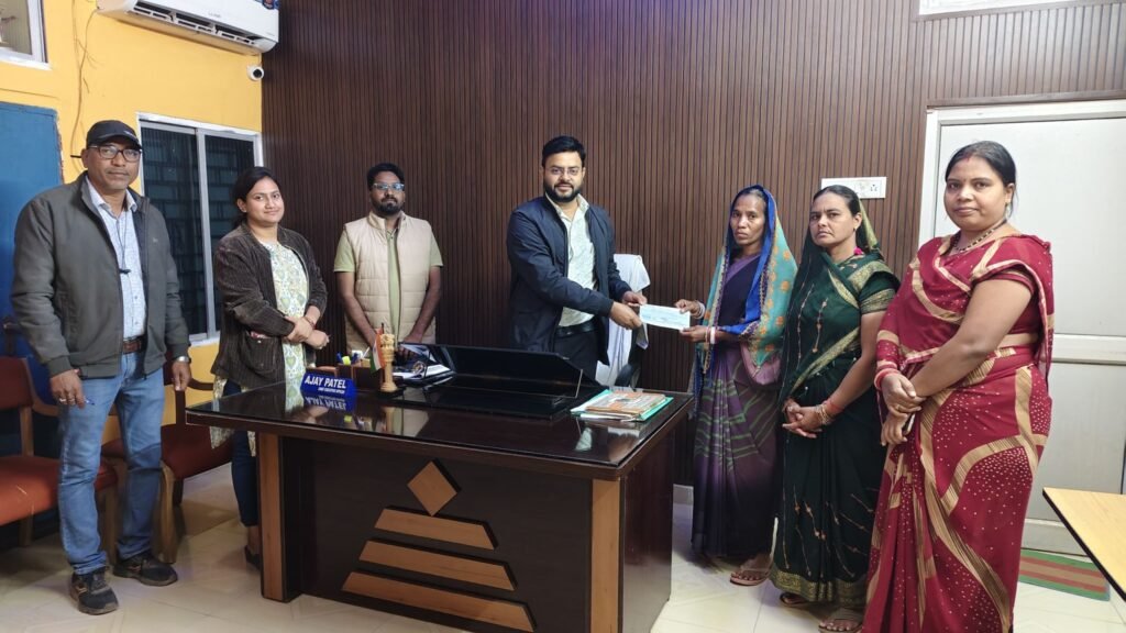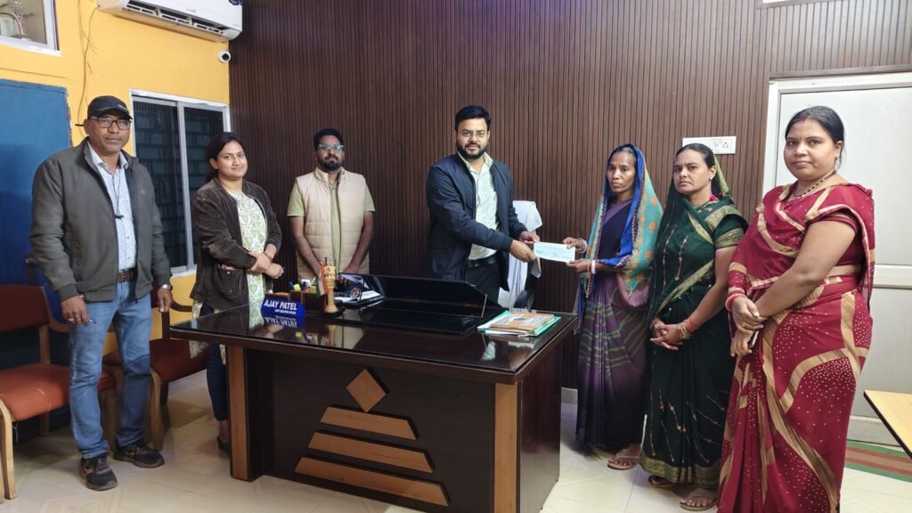 दिवंगत श्रमिक राजेन्द्र सिदार की पत्नी ललिता सिदार को दिया गया 25 हजार का चेक