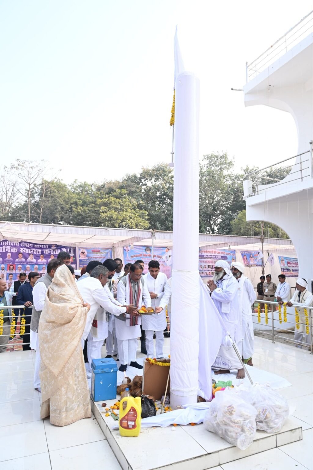 सारंगढ़, 20 दिसम्बर 2025 मुख्यमंत्री श्री विष्णुदेव साय शनिवार को सारंगढ़ स्थित गुरु घासीदास ज्ञान स्थली, पुष्पवाटिका में आयोजित तीन दिवसीय संत गुरु घासीदास रजत जयंती समारोह के समापन अवसर पर मुख्य अतिथि के रूप में शामिल हुए। मुख्यमंत्री ने ज्ञान स्थली में स्थापित जैतखाम में विधिवत पूजा-अर्चना कर प्रदेश की सुख-शांति, समृद्धि और खुशहाली की कामना की।