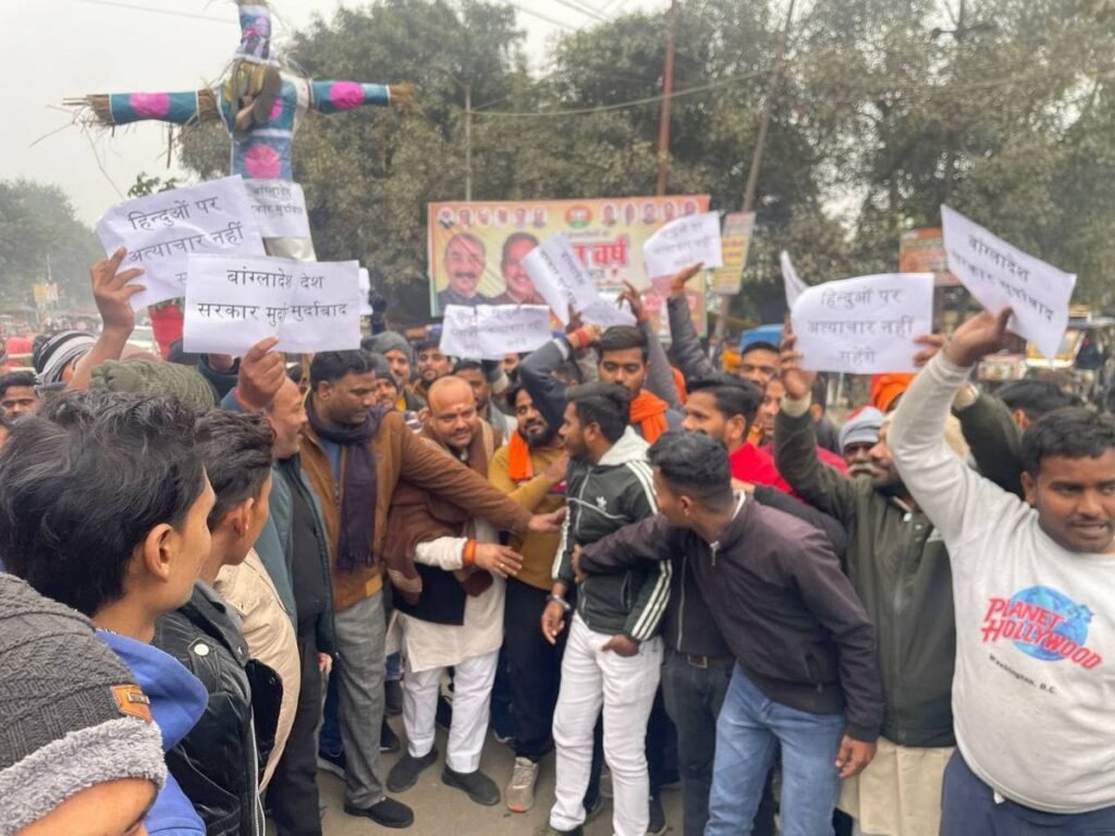 विश्व हिंदू परिषद के विभाग संगठन मंत्री मानवेंद्र सिंह दीपक राणा के नेतृत्व में प्रतीकात्मक रूप से पुतला दहन किया गया। प्रदर्शनकारियों ने बांग्लादेश सरकार और अंतरराष्ट्रीय संगठनों से हिंदुओं की सुरक्षा सुनिश्चित करने की मांग की। यह प्रदर्शन शांतिपूर्ण रहा, लेकिन इसमें एक सख्त संदेश दिया गया।