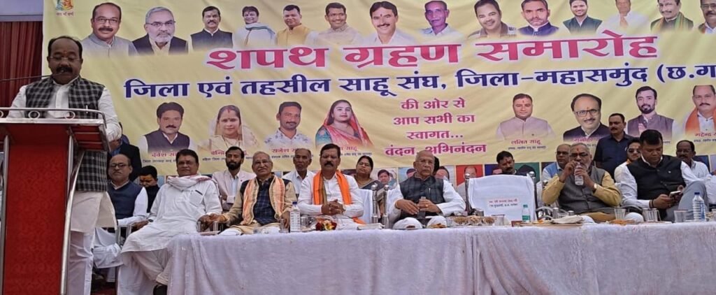 जिला एवं तहसील साहू संघ महासमुंद का शपथ ग्रहण समारोह संपन्न उपमुख्यमंत्री श्री अरुण साव शामिल हुए उपमुख्यमंत्री श्री साव ने कर्मा भवन में शेड निर्माण के लिए 25 लाख रुपये की घोषणा भी की*
