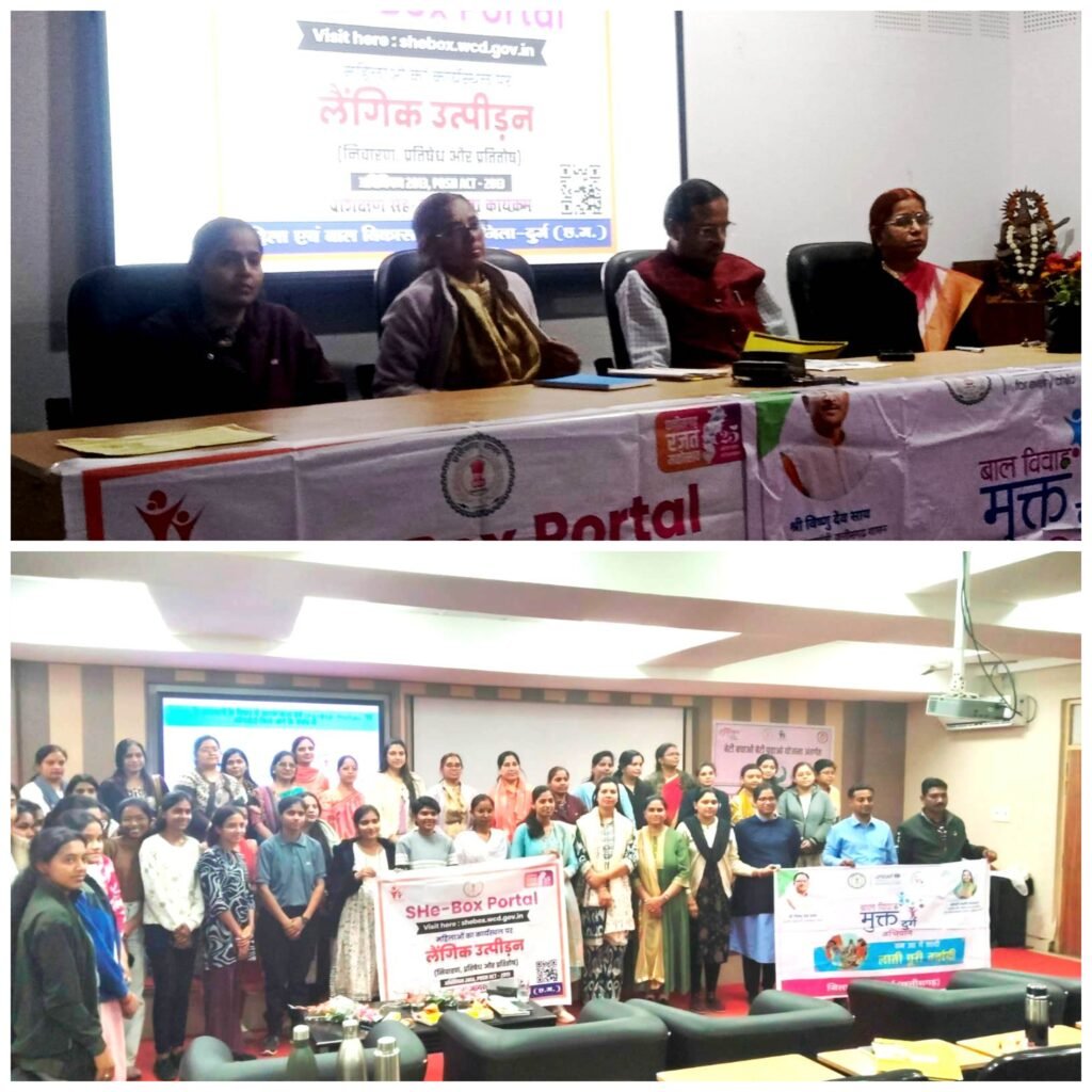 दुर्ग,महिला एवं बाल विकास विभाग के तत्वावधान में महिलाओं का कार्यस्थल पर लैंगिक उत्पीड़न (निवारण, प्रतिषेध एवं प्रतितोष) अधिनियम-2013 एवं शी-बॉक्स पोर्टल के संबंध में प्रशिक्षण सह कार्यशाला एवं जागरूकता कार्यक्रम का आयोजन 19 जनवरी 2026 को शासकीय विश्वनाथ यादव तामस्कर स्नातकोत्तर महाविद्यालय दुर्ग एवं छत्तीसगढ़ स्वामी विवेकानंद विश्वविद्यालय में किया गया।