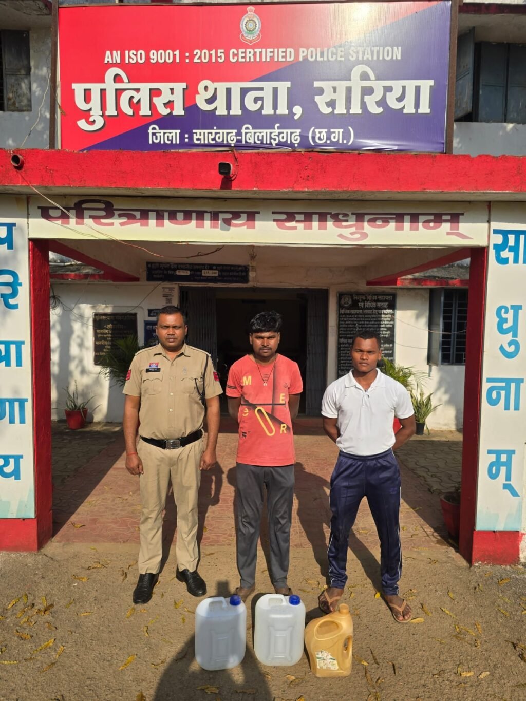 सरिया पुलिस की अवैध शराब के विरुद्ध कार्यवाही 25 लीटर कच्ची महुआ शराब के साथ एक आरोपी गिरफ्तार