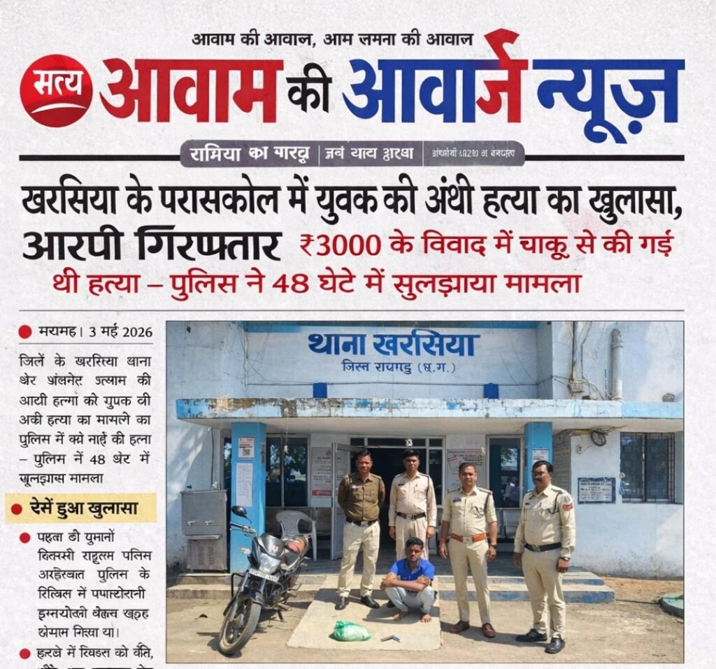 Raigarh जिले के खरसिया थाना क्षेत्र अंतर्गत ग्राम परासकोल में युवक की अंधी हत्या के मामले का पुलिस ने खुलासा करते हुए आरोपी को गिरफ्तार कर न्यायिक रिमांड पर जेल भेज दिया है।