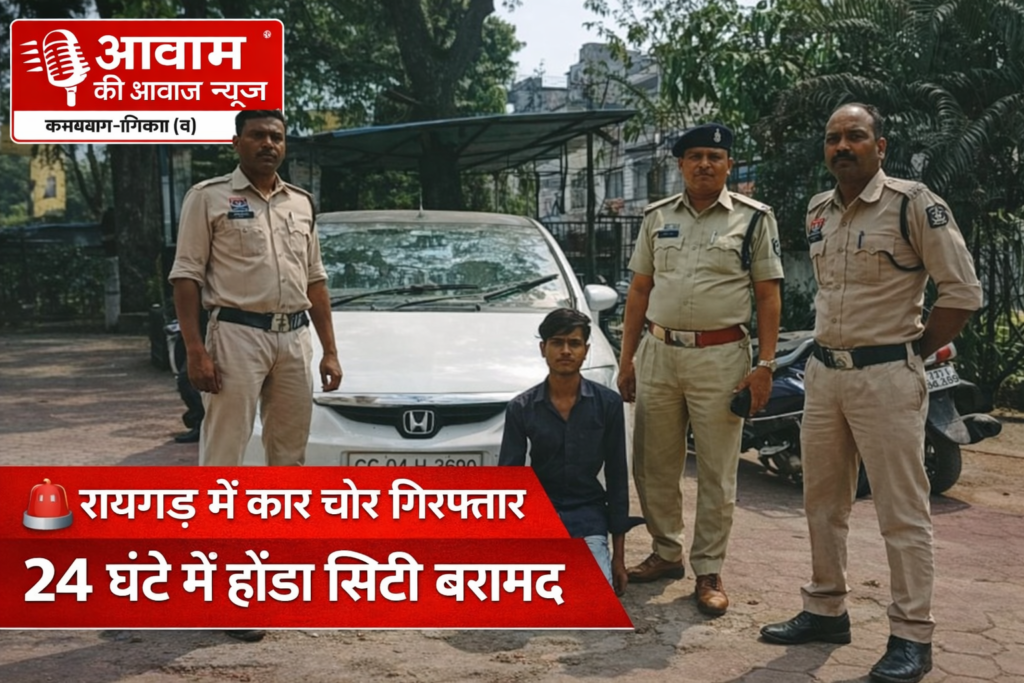 रायगढ़। थाना कोतवाली पुलिस ने चैतन्य नगर क्षेत्र से चोरी हुई होंडा सिटी कार को 24 घंटे के भीतर बरामद करते हुए एक आरोपी को गिरफ्तार किया है। मामले में शामिल दो अन्य आरोपी अभी फरार हैं, जिनकी पुलिस द्वारा तलाश की जा रही है।