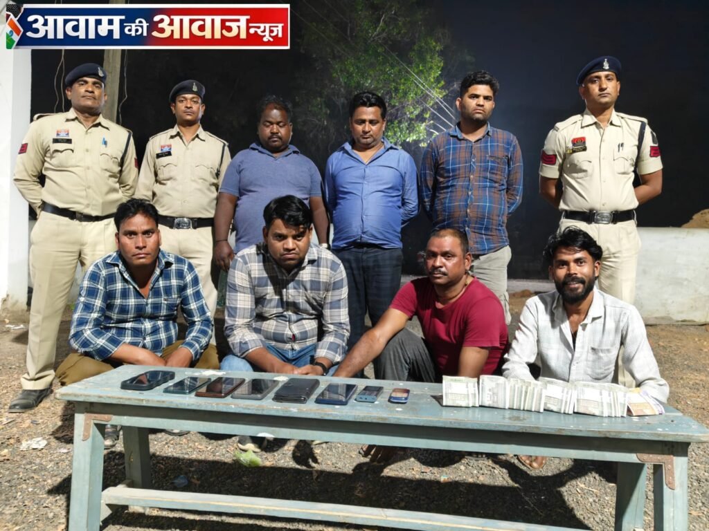 सूचना पर अतिरिक्त पुलिस अधीक्षक पंकज पटेल तथा अनुविभागीय अधिकारी (पुलिस) भुवनेश्वरी पैकरा के मार्गदर्शन में थाना प्रभारी निरीक्षक नरेन्द्र यादव के नेतृत्व में पुलिस टीम ने मौके पर दबिश देकर 7 आरोपियों को जुआ खेलते रंगे हाथों पकड़ा।