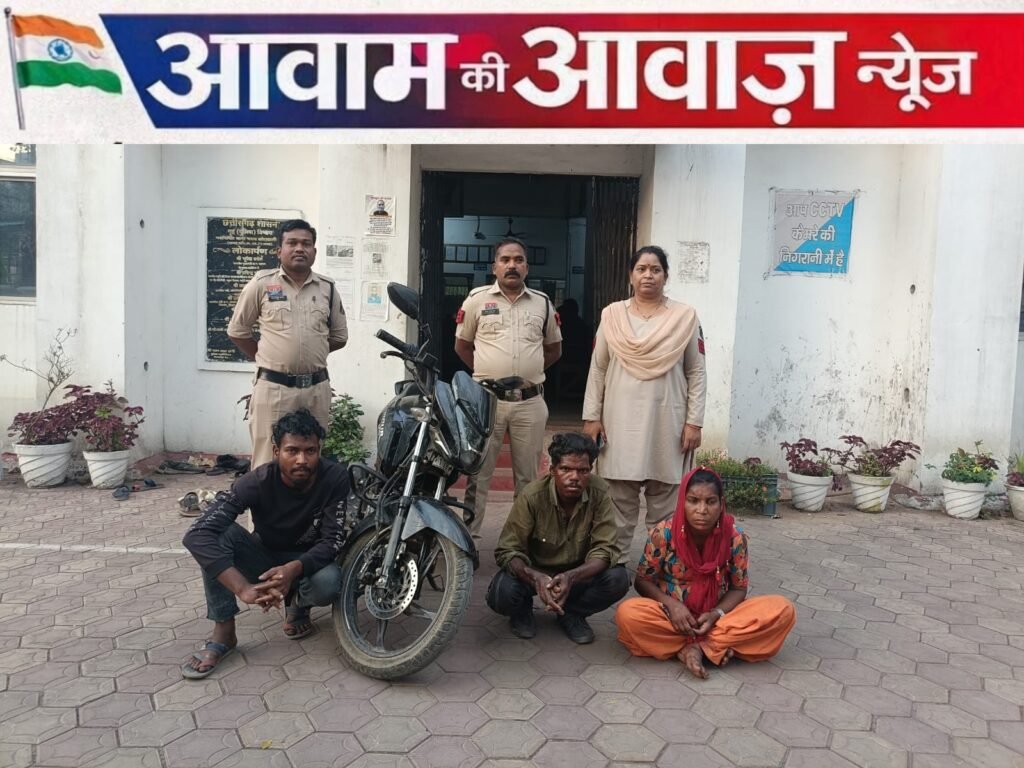 वरिष्ठ पुलिस अधीक्षक श्री शशि मोहन सिंह के दिशा निर्देशन पर कोतवाली पुलिस ने जिला अस्पताल परिसर से चोरी हुई मोटरसाइकिल के मामले में तत्परता दिखाते हुए 24 घंटे के भीतर तीन आरोपियों को गिरफ्तार कर बड़ी सफलता हासिल की है। गिरफ्तार आरोपियों में एक महिला और दो पुरुष शामिल हैं।