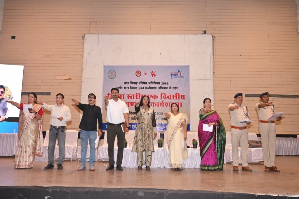 रायगढ़, 21 फरवरी 2026/ महिला एवं बाल विकास विभाग, रायगढ़ द्वारा नगर पालिक निगम ऑडिटोरियम में बाल विवाह प्रतिषेध अधिनियम 2006 के अंतर्गत “बाल विवाह मुक्त छत्तीसगढ़” अभियान के तहत जिला स्तरीय एक दिवसीय प्रशिक्षण सह कार्यशाला का आयोजन किया गया। कार्यक्रम का मुख्य उद्देश्य जिले को बाल विवाह की कुप्रथा से मुक्त करना तथा अधिकारियों एवं कर्मचारियों को कानूनी प्रावधानों की विस्तृत जानकारी देकर जमीनी स्तर पर प्रभावी कार्रवाई सुनिश्चित करना था। कार्यशाला कलेक्टर श्री मयंक चतुर्वेदी के निर्देश, जिला पंचायत के मुख्य कार्यपालन अधिकारी श्री अभिजीत बबन पठारे तथा जिला कार्यक्रम अधिकारी श्री एल.आर. कच्छप के मार्गदर्शन में आयोजित की गई।