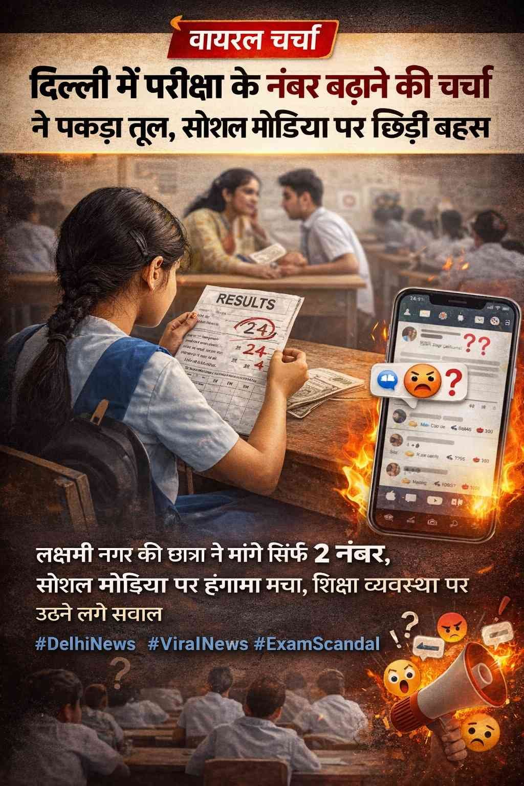 नई दिल्ली। राजधानी दिल्ली के लक्ष्मी नगर क्षेत्र से जुड़ी एक छात्रा का मामला सोशल मीडिया पर तेजी से वायरल हो रहा है। दावा किया जा रहा है कि छात्रा ने परीक्षा में केवल दो नंबर बढ़ाने की मांग की थी, लेकिन यह मामूली सी बात अब एक बड़े विवाद का रूप ले चुकी है।