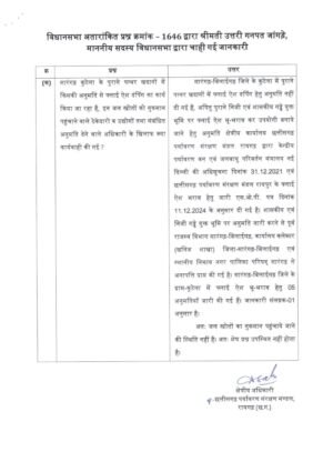अनुमति देने से पहले संबंधित विभागों से आवश्यक अनापत्ति भी ली गई है। इसमें राजस्व विभाग, कलेक्टर कार्यालय (खनिज शाखा) तथा नगरपालिका परिषद सारंगढ़ शामिल हैं।
