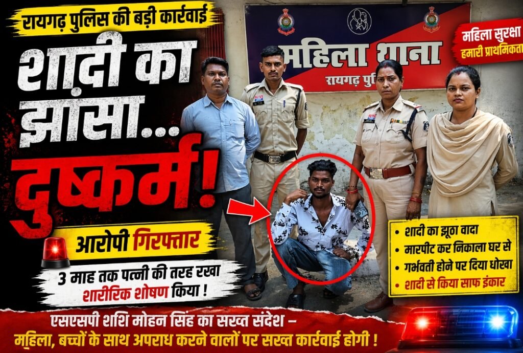 इस दौरान गर्भवती होने की जानकारी देने पर आरोपी ने शादी का आश्वासन दिया, लेकिन 24 मार्च 2026 को बिना बताए वापस रायगढ़ आ गया।