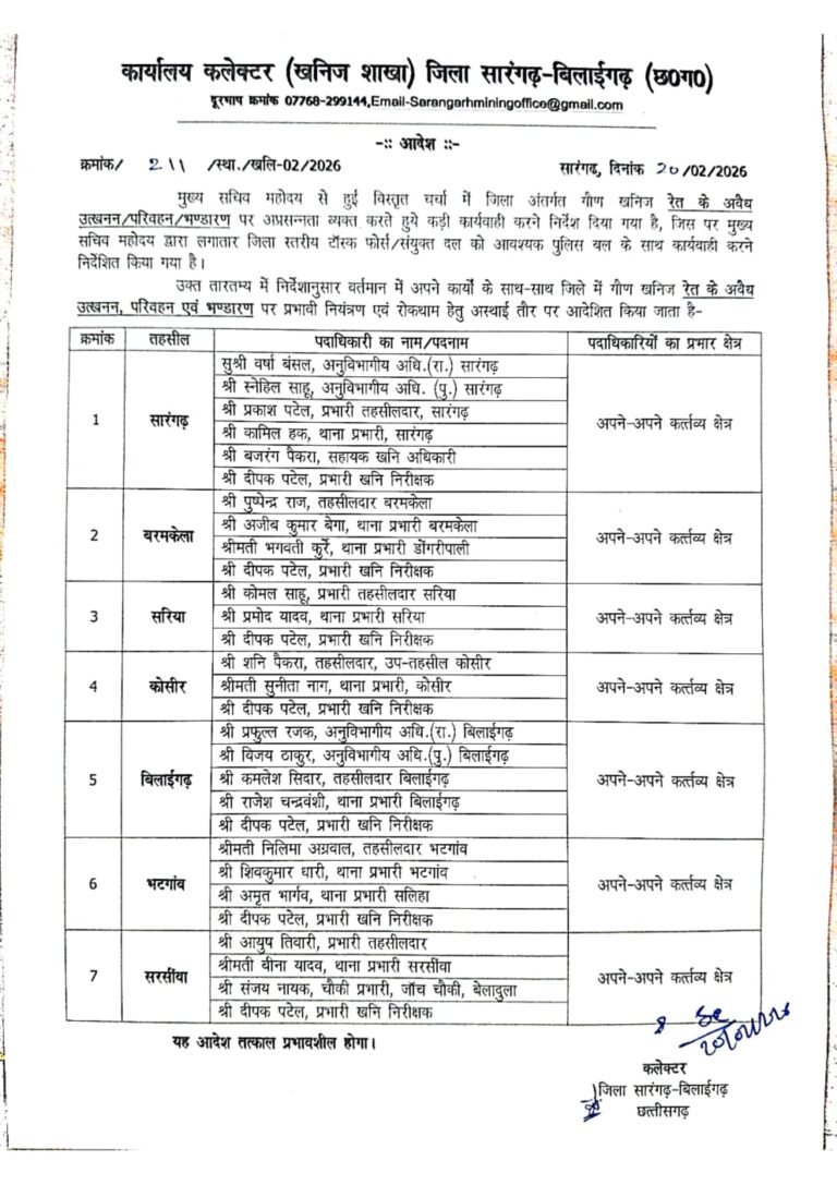 मुख्य सचिव के निर्देश पर लगातार जांच करने संयुक्त दल को मिला आदेश सारंगढ़ बिलाईगढ़, 21 फ़रवरी 2026/राज्य सरकार के...