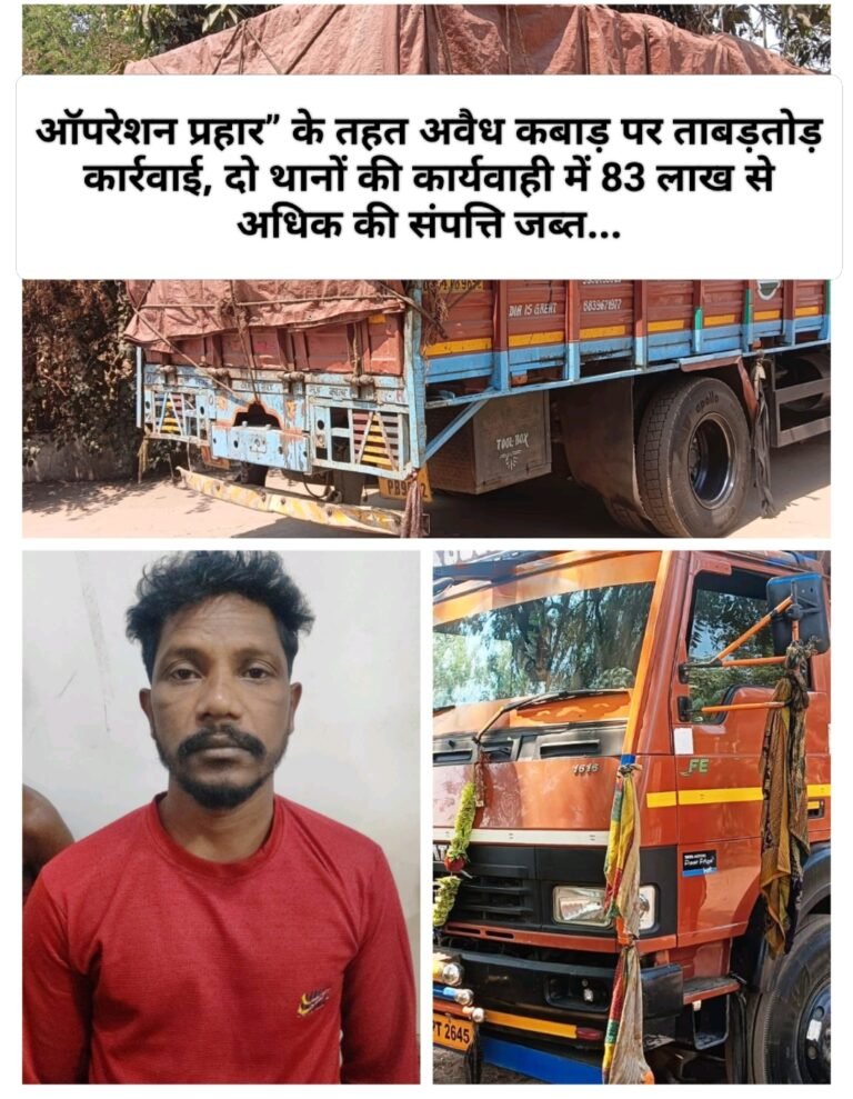 ऑपरेशन प्रहार” के तहत अवैध कबाड़ पर ताबड़तोड़ कार्रवाई, दो थानों की कार्यवाही में 83 लाख से अधिक की संपत्ति...